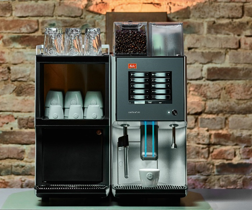 Grâce à ses dimensions compactes, à sa jolie coque en aluminium et à sa barre lumineuse configurable, la Melitta Cafina XT8 s’intègre parfaitement dans le décor de n’importe quel établissement.